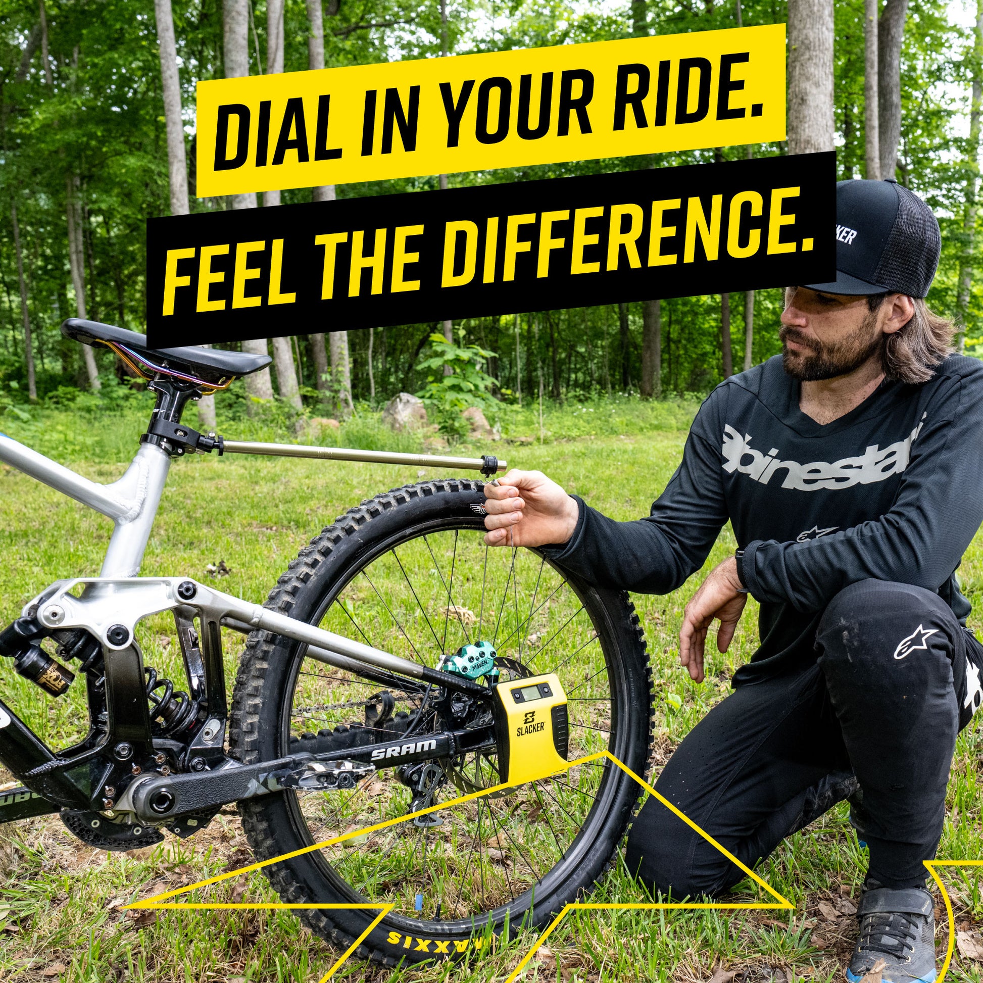 Everything you need to get your mountain bike suspension perfectly dialed for maximum grip and control. See real-time sag percentages right on the handlebars.